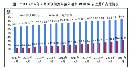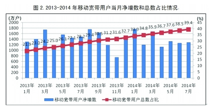 7月,全國移動電話用戶凈增297.4萬戶,8M以上固定寬帶接入用戶凈增299.3萬戶。