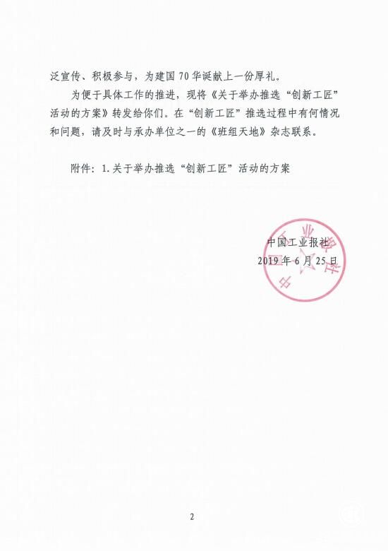為便于具體工作的操作,現將《關于舉辦推選“創新工匠”活動的方案》轉發給你們。在“創新工匠”推選過程中有任何情況和問題,請及時和承辦單位之一的《班組天地》雜志聯系。