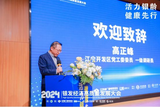 江寧開發區黨工委委員、一級調研員高正峰在致辭中表示:“希望通過本屆大會,可以擴大銀發經濟發展的‘朋友圈’‘生態鏈’,推動銀發經濟高質量發展,為銀發人群提供‘備老、適老、養老’的優質健康服務。”同時他還表示,享佳集團在江寧區深耕銀發產業17年,已經成為銀發經濟產業的標桿企業。