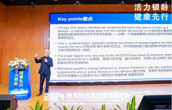 隨著銀發群體健康意識的增強,營養食品市場需求愈加旺盛,讓科學營養成為了銀發經濟的重要組成部分之一。對此,國際營養學家、“最佳營養學”創始人帕特里克·霍爾福德在大會現場發表演講《銀發用戶的最佳營養實踐》,用豐富的專業知識和實踐經驗,深刻剖析了銀發用戶營養需求的重要性及獨特性,并且提供了切實可行的營養實踐建議。