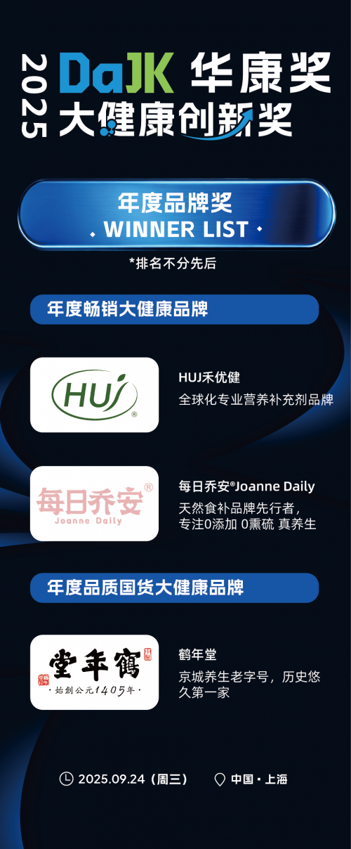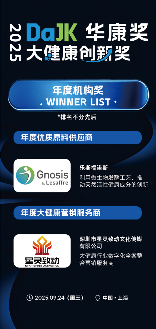 華康獎·DaJK大健康創新獎(簡稱:華康獎)以用戶日常健康消費場景為核心錨點,深度聚焦營養保健、功能性食品、個人護理等細分賽道,致力于挖掘品牌成長動能與產業鏈協同價值。通過科研嚴謹性、產業實踐性、消費洞察力三維評審體系,甄別真正推動用戶體驗升級與生態優化的標桿力量,為行業樹立經得起市場檢驗的創新范式。