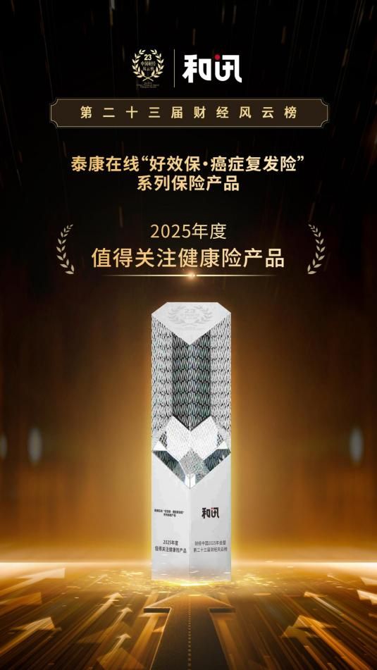 在此背景下,泰康在線前瞻性布局帶病體保險領域,其“好效保·癌癥復發險”系列保險產品通過“醫藥融合”創新賦能,精準填補市場空白,為數以萬計的家庭提供了關鍵的經濟與心理支持。基于此卓越實踐,該系列產品于近日在由聯辦集團、和訊聯合主辦,財經中國會承辦的「財經中國2025年會暨第23屆財經風云榜」評選中,榮膺“2025年度值得關注健康險產品”,贏得專業認可。
