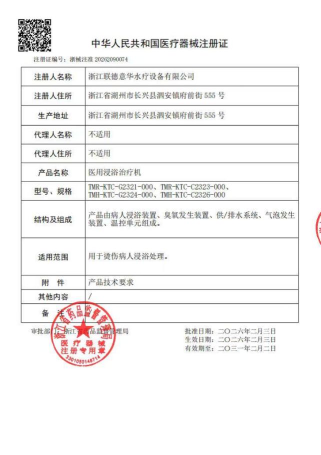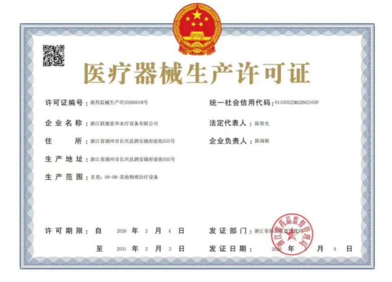26年初春,巨晴科技集團旗下聯德意華“醫用浸浴治療機”醫療器械注冊證書及生產許可證雙雙落地。與水對話33年,巨晴歷經多輪嚴格的技術審評與多番嚴苛的現場體系核查,讓水療這一古老健康智慧,在現代醫療殿堂中獲得莊嚴回響。