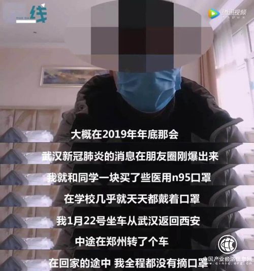1月22日坐車從湖北武漢,經河南鄭州轉車回陜西西安,仍是全程佩戴口罩沒有摘。