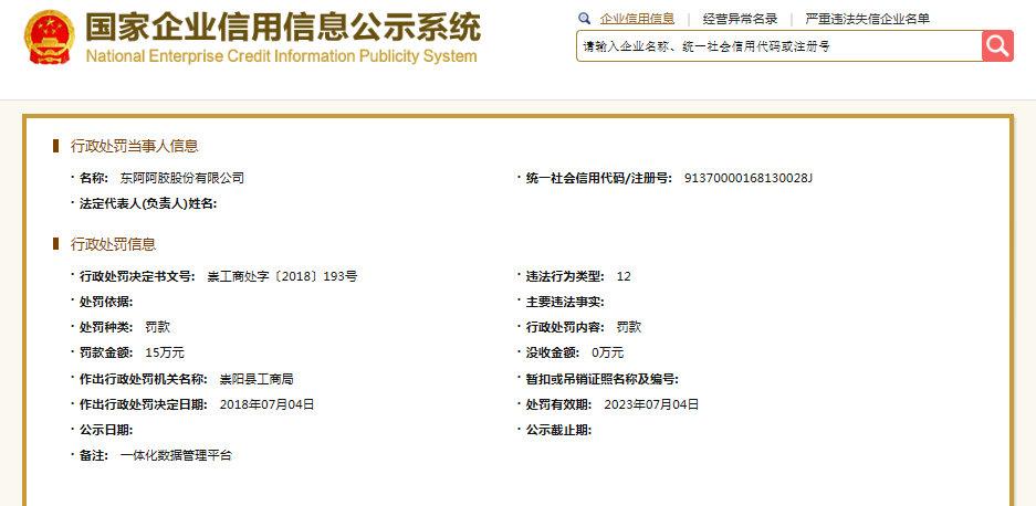 無獨有偶,管理上的漏洞遠不止虛假宣傳。據國家企業信用信息公示系統,2018年07月04日,崇陽縣工商局對其做出行政處罰,處罰金額15萬元,緣由未公示。