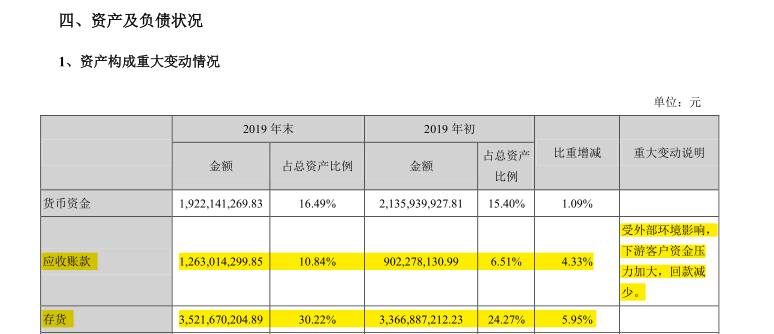 東阿阿膠業績高速增長的另一面,是經銷商囤貨壓貨帶來的發展瓶頸。這一現象,也在年報中得以印證。2019年末, 其存貨金額高達3,521,670,204.89 元,占總資產比例30.22%;2019年初,存貨金額達3,366,887,212.23元,占總資產比例24.27%。日前,《證券時報》就有報道,東阿阿膠2019年業績下滑,究其原因,是東阿阿膠渠道庫存出現持續積壓,導致營收下降,直接影響經營業績。