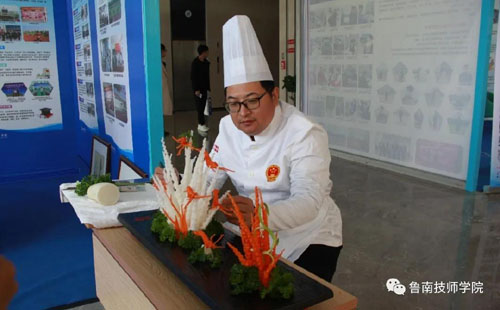 學院在展廳設置的全面展示魯南技師學院在校園文化、特色育人、特色專業等方面的創新舉措和辦學成果。在展臺集中展示了學前教育專業繪畫手工環創、金陵十二衩面塑、無人機、機械加工模型、電梯模型等作品,學院交通工程系專業學生帶來的高鐵服務禮儀表演和商務管理系專業教師現場技能展示食品雕刻,贏得觀眾或駐足圍觀、或品嘗點贊、或咨詢洽談。他們對學院表現出來的精湛的技藝給予了極大的肯定。9日上午未過,參觀的嘉賓們領走了學院近百份招生簡章,與不少家企業等進行了洽談。