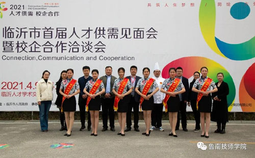 共筑人生夢想,同繪六強藍圖。4月9日,由山東省臨沂市人民政府主辦的“首屆人才供需見面會暨校企合作洽談會”開幕式在市人才文化交流中心(應用科學城)舉辦,魯南技師學院黨委委員、副院長辛宇出席此次交流會,學院招生就業處、宣傳部負責同志和參展作品隨隊教師,高鐵服務禮儀表演學生參加了此次人才交流會。