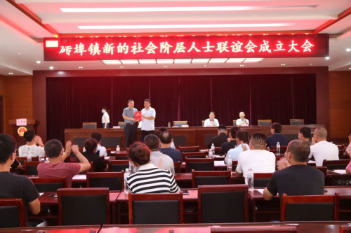 會議第二階段,召開磚埠鎮新的社會階層人士聯誼會第一屆第一次會議,舉行磚埠鎮新聯會揭牌儀式,為新當選會長、名譽會長、秘書長、副會長、監事長等頒發聘書。由磚埠鎮新的社會階層人士聯誼會會長孫京偉表態發言,縣新聯會會長范遵厚致賀詞。