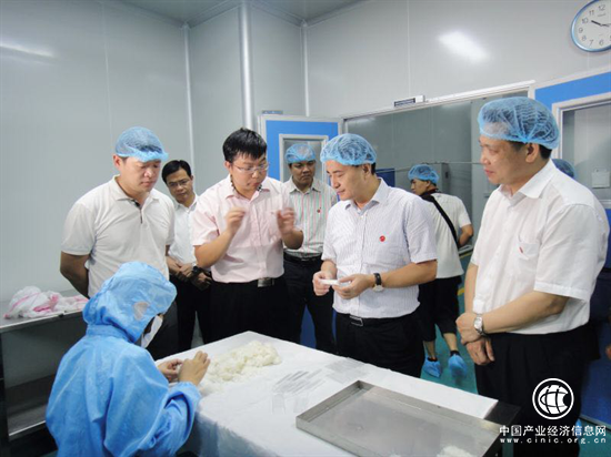 (廣西貴港市委書記李新元與平南縣委書記潘漢勝在同亨生物工廠考察和指導工作)