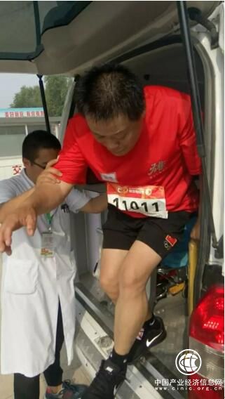 一名運動員腿抽筋,經安新醫護人員和志愿者救助重返賽道。張偉亞攝