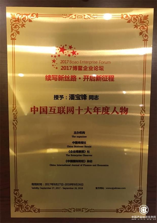 泰然集團董事長潘寶鋒榮獲“中國互聯網十大年度人物”