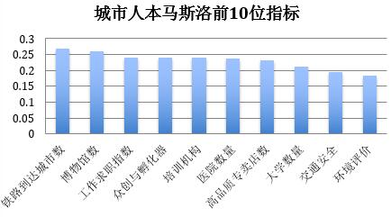在城市人本馬斯洛指數構成的50個指標中,研究發現,對指數得分貢獻前10位的指標,有4個集中在職業發展、創業教育等人們自身發展成長領域。充分體現出在當下,自我實現價值需求在市民對城市的滿足感上日益凸顯的重要性。