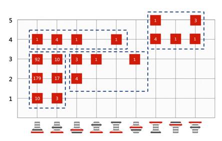 矩陣中數字代表本期數據,處于該位置的城市數。從矩陣圖可見,以"量"的衡量來看,同處第4層級的13個城市,層級機構卻有很大差異,"質"的表現有很大不同,相對來說,位于右側城市對自我實現等高階需求的滿足更強;而位于左側的城市則在生理、安全等需求滿足更強。