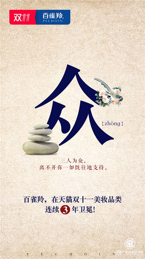 百雀羚以匠心精神將東方大美融入文化、產品、包裝、營銷。今年8月,百雀羚86周年品牌盛典提出“東方有大美”;9月,聯合京劇余派坤生王珮瑜提出“認真你就贏了”;10月,首次跨界珠寶,聯手故宮文化珠寶首席設計顧問鐘華打造“東方簪”,提出“認真,讓東方更美”。“認真”與“東方美”無疑是百雀羚的最佳注腳。可以說,所有百雀羚人的匠心協力,成就了東方之美,也成就了百雀羚在今年雙十一的成績。