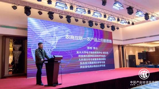 復旦大學電子商務研究中心副主任、國家級電子商務示范基地創建指導專家、商務部電子商務進農村示范縣評審組組長、中國電子商務產業園發展聯盟專家邵明先生發表《農商互聯-農產品上行新思路》主題演講