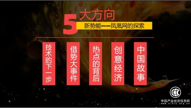在對新技術、新形式、新內容有了全面的闡釋后,郝煒為大家展示了鳳凰網探索的五大創新方向。分別是技術的下一步、借勢大事件、熱點的背后、創意經濟和中國故事。技術的下一步是指"品牌程序化",鳳凰網通過推出人工智能+人文關懷的鳳翼程序化廣告平臺,整合最優質的媒體資源,不僅將廣告展現給用戶,更是精心設計品牌場景,精準傳遞品牌的力量,把廣告主的品牌價值更好的傳遞給每一位用戶;借勢大事件指的是鳳凰網的"大事件營銷",鳳凰網書寫著不可復制的"超級影響";熱點的背后指的是鳳凰網的"熱點營銷",通過"鳳眼"系統及專業編輯的新聞敏感性互相配合,使得鳳凰網能夠迅速捕捉社會熱點;創意經濟指的是鳳凰網的"社會設計",通過將社會問題進行再發現和再定義,通過創意的方式形成解決方案,最后產生新的溝通內容、產品跟服務;"中國故事"則展示了鳳凰網希望搭建起一個提供服務、分享經驗的平臺,用技術的創新、匠心精神、用心溝通,為中國品牌走出去提供可能,為全球品牌到達中國提供新的服務。