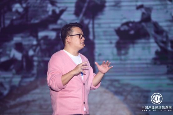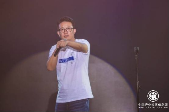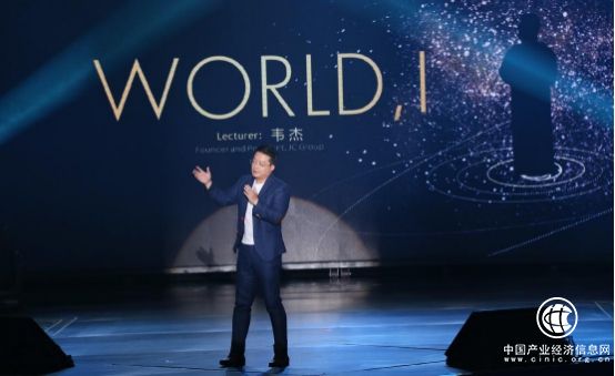 韋杰從舞臺右側樓梯快步走到舞臺中央和大家打招呼,迎面而來活力的氣息。果不其然,他說到了數字經濟,涉及大數據、智能化的發展,介紹了地球語言。