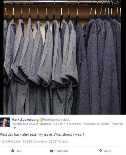 扎克伯格的灰色T恤衣櫥,已經都見識過了,幾十件一個色系的T恤啊~視覺疲勞ING