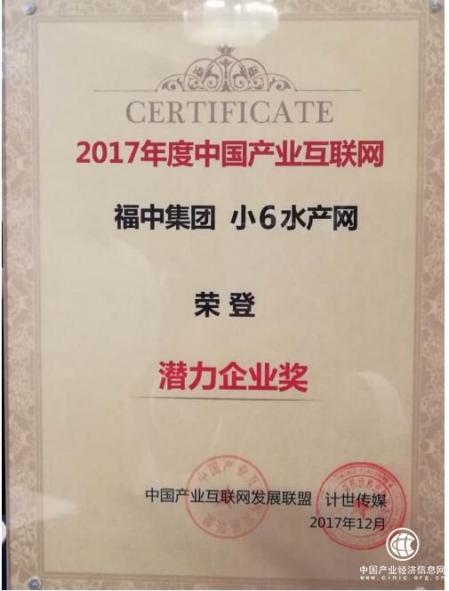 12月13日,2017中國產業互聯與數字經濟大會在北京舉行。大會發布了2017年度產業互聯網集成服務優秀解決方案、產業互聯網相關研究成果、智慧園區綠皮書,以及2017中國產業互聯網TOP100排行榜,產業互聯網風云人物獎、潛力企業獎、服務平臺等獎項。福中集團旗下水產供應鏈平臺小6水產網在入選TOP100的同時,被授予唯一的潛力企業獎,與服務平臺獎獲得者華為云、用友云等同時登臺領獎。
