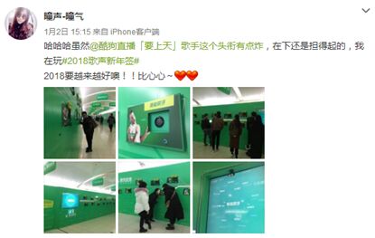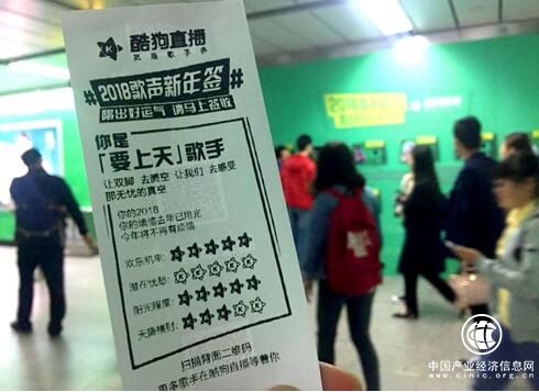 你站在屏幕前拿著麥克風對準屏幕唱一首歌,屏幕將測算出你是哪種“歌手”,燈帶會引導你走向特定的「歌手新年簽」喇叭,并播放該類型歌手的對應歌曲,系統還會打印出紙質版新年簽,上面附有對應歌詞、2018全年趣味運勢等,很多網友把這些有趣的內容也分享到了微博上。