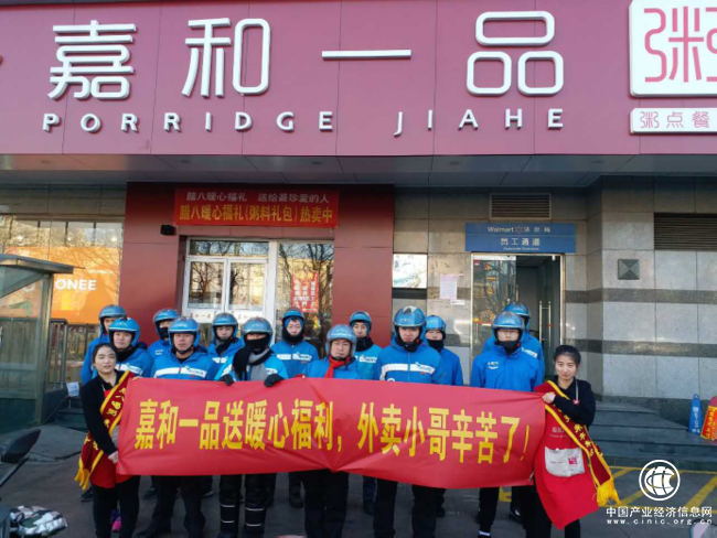 為了回饋騎手一年來辛苦的付出,在1月23日、24日,嘉和一品74家門店為1500名外賣騎手,提供免費品嘗臘八粥套餐,同時還贈送每位外賣小哥一份臘八粥,帶回去給家人品嘗,把愛帶回家。