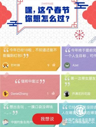 新一代的年輕人,他們向往自由、搞怪、前衛、冒險,期待與傳統春節不一樣的“新”的過節方式。ZAKER通過《嘿!這個春節你想怎么過?》環節的評論收集和調查問卷的方式了解年輕人內心的想法;并通過收集整理分析調查結果,發布《年輕人的花樣春節》報告,把年輕人對如何過春節的真實想法表現出來,還能給年輕人推薦一些新的過春節的方式。