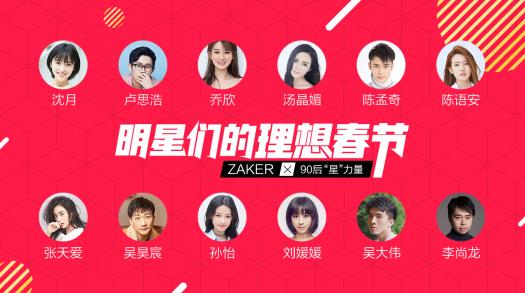 對于明星來說,什么樣的春節是理想中的呢?ZAKER攜手沈月、張天愛、喬欣、孫怡、陳語安等12位娛樂、文藝界的90后明星和KOL,圍繞“理想春節”這一主題,講述自己對“理想春節”的看法,并給網友送出新春祝福。