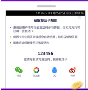 為了增加玩法的趣味性,官方還引入了“復活幣”的概念,用戶可通過邀請好友使用復活碼等方法獲取復活幣,在答題錯誤時,復活幣將自動賦予其繼續答題的資格。除每場最后一題外,一場答題中復活幣最高可使用三次。在豐厚獎金與趣味玩法的吸引下,齊齊直播“百萬答題”上線首日便吸引了20萬人同場競技,最終答題通關的用戶每人分得了數百元獎金,相比于其他答題平臺,額度高出十余倍,堪稱最“壕”答題。