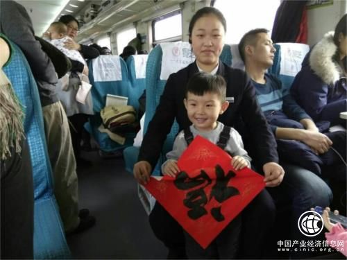 乘務員為返鄉旅客送上一張張大大“福”字
