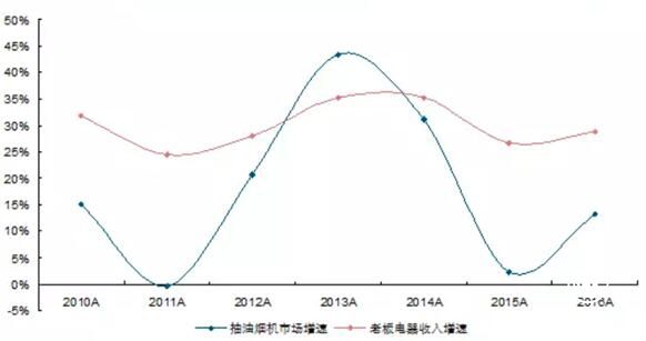 (老板收入增速與抽油煙機行業增速對比,體現穿越周期屬性——長江證券研究所)