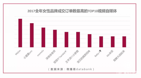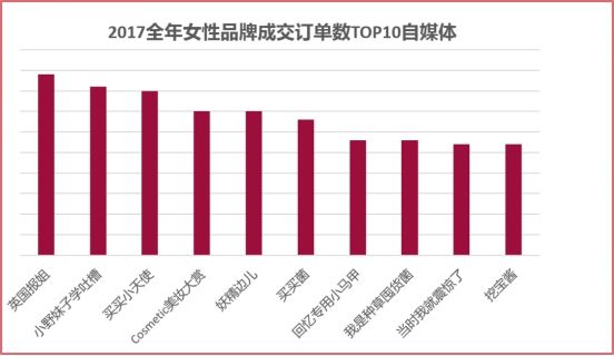 與此同時,微播易也分析了2017年全年女性品牌投放社媒成交訂單數最多的10個自媒體,如下圖:
