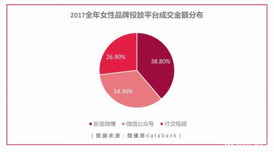 數據顯示,2017年全年,女性品牌最愛投放的平臺是微博,占比達到38.8%。分析認為,原因有三:
