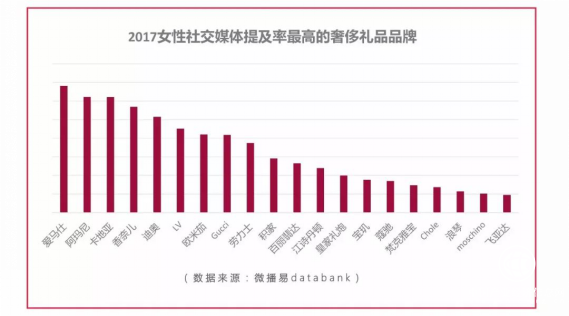 最后,再一起來看看,女性社媒賬號中最常出現的美妝、服飾、奢品禮品品牌,它們是不是也切中了你的關注呢?