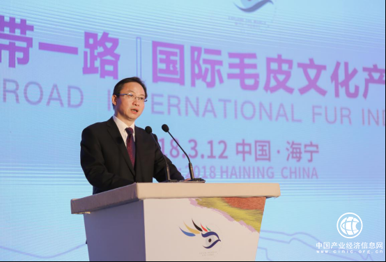 海寧中國皮革城董事長張月明代表中國業界在“一帶一路”國際毛皮文化產業高峰論壇上作題為《世界毛皮產業的挑戰和機遇》的主題演講。