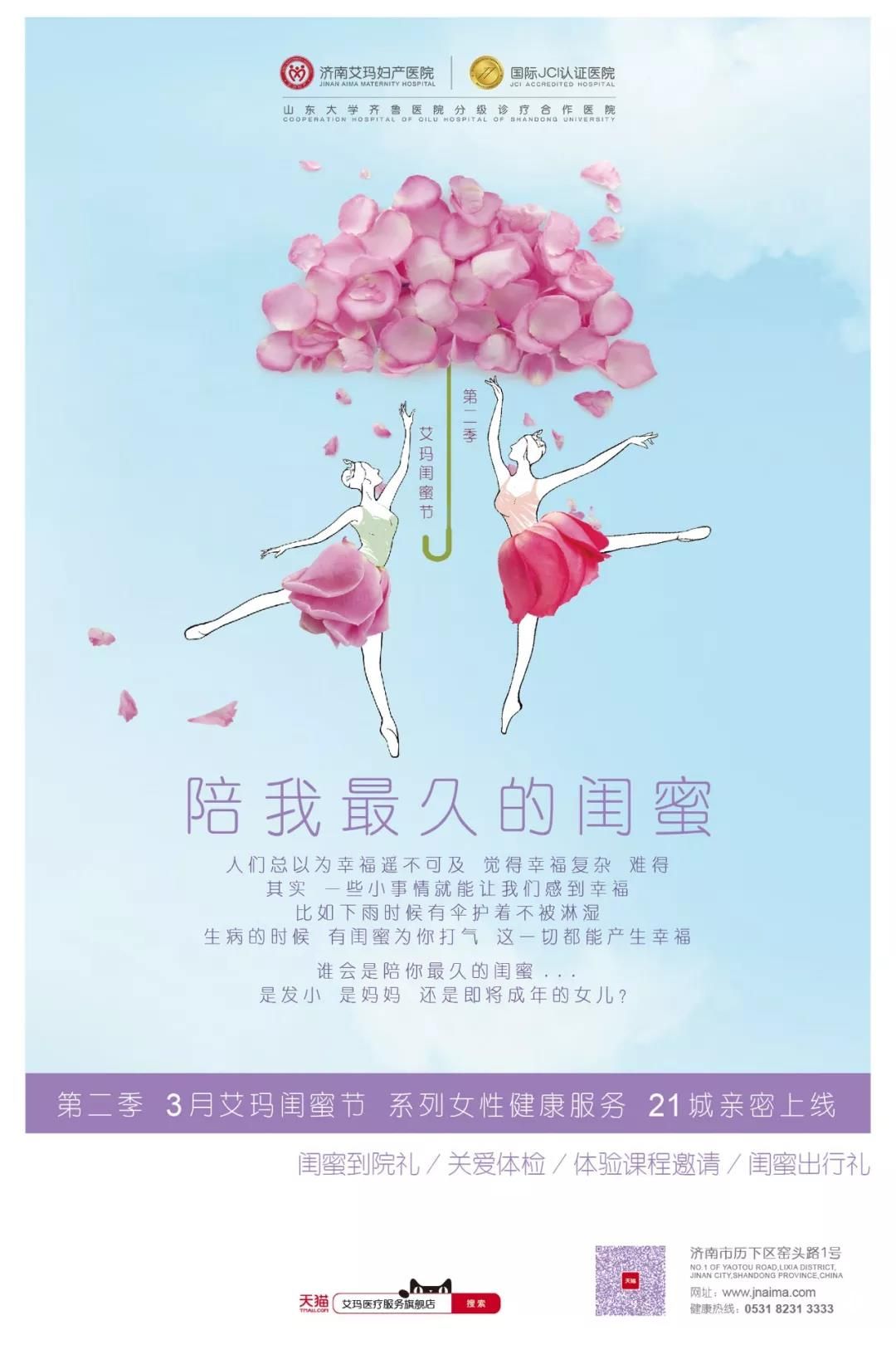 3月,是溫暖的季節,是甜蜜的季節,在這個全球都會關愛女性的月份里,你有沒有準備好接受四海八荒的無限寵愛呢?為了答謝泉城婦嬰群體對醫院的厚愛和支持,濟南艾瑪婦產醫院第二季“艾瑪閨蜜節”系列女性健康服務親密上線,讓親愛的泉城小仙女們都能享受到來自艾瑪的四重健康好禮。