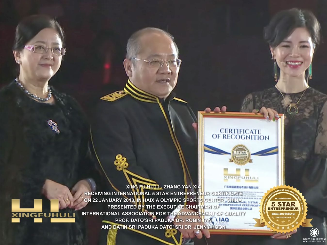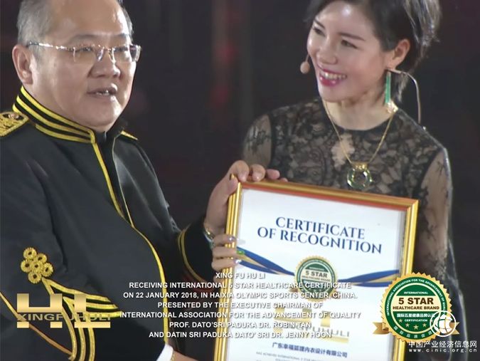 屢在國際上創品牌口碑的廣東幸福狐貍內衣設計有限公司,2018年伊始,在國際上再創佳績,通過國際品質促進會(簡稱IAQ)的審核,在產品質量與企業領導上都獲得了高度認可,榮獲四大頂級榮譽,包括了:國際五星品牌認證、國際五星企業家認證、國際五星健康品牌認證、國際五星團隊認證,并且于2018年1月22日在福州海峽奧體中心綜合體育館所主辦的《幸福春晚.有福之州暨表彰盛典》上,由國際品質促進會執行主席拿督斯里巴杜卡陳宥財客座教授親自頒發認證獎狀,確認幸福品牌之國際化,有效提高企業的經濟效益和社會效益。