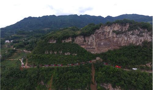 杰瑞壓裂車組行駛在四川頁巖氣地區蜿蜒的山路中