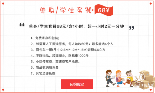 現如今,搬家公司已經成為市民喬遷新居、租房換房的不二選擇。此前的一項調研數據顯示,在搬家過程中,涉及大件家電產品、床上用品的情況下,超過90%的受訪者會選擇搬家公司為其搬家。隨著城市人口的流動性增強以及市民租房換房頻率的增加,搬家已然成為市民生活中的一部分。然而,找到一家合適的搬家公司并不容易。搬家市場火熱的同時,正面臨著嚴峻考驗。作為大學生,首先考慮的可能就是經濟節約,性價比高。因為在大學生搬家的實地過程中,并沒有大件物品,更多是生活雜物,“一車搬”是普遍需求。