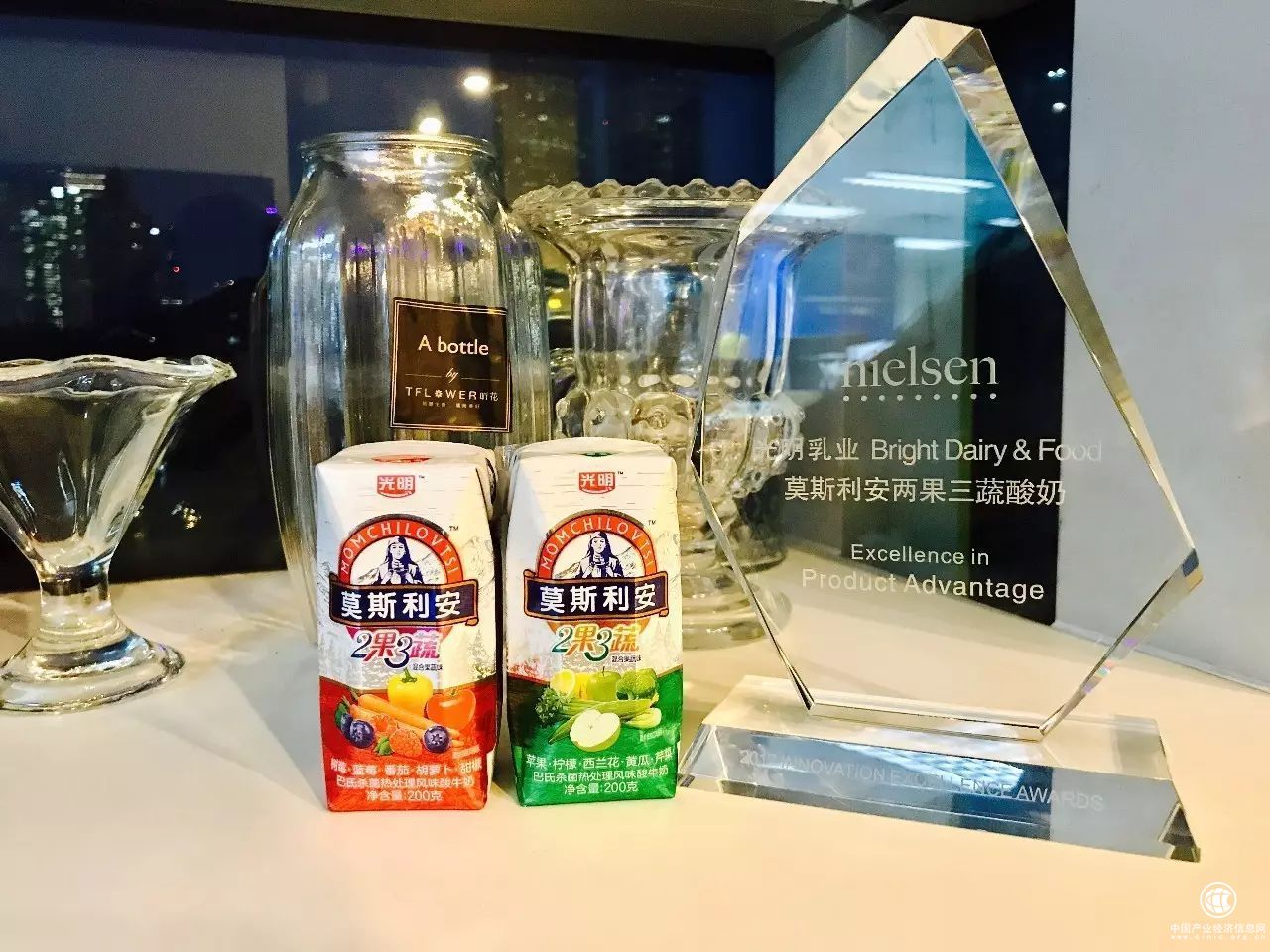 在尼爾森“卓越創新,贏在中國”研討會上,光明莫斯利安2果3蔬常溫酸奶榮獲2017尼爾森“卓越功能創新獎”