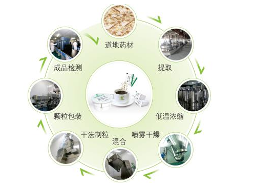 在中藥配方顆粒的生產環節:一、高標準的GMP廠房設備;二、領先的工藝技術和流程;三、嚴格的全過程監控和檢測。“中藥配方顆粒基本技術原則體現在,所有產品的生產原料是經過規范炮制加工后的中藥飲片,用水煎煮提取,通過不同的設備和條件來實現不同品種的先煎、后下、文火、武火等煎煮要求。”