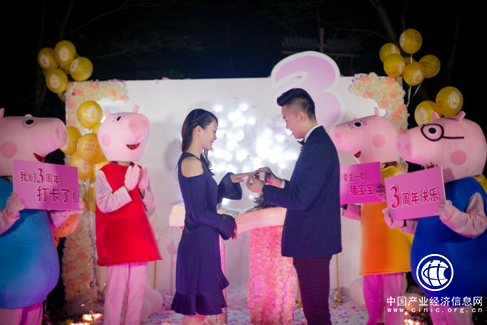 桑先生將鉆戒戴入胡女士的手指:老婆,三周年快樂!我愿意做你一輩子的豬爸爸,在你身后永遠守護你、陪伴你,直到永遠!豬媽媽瞬間用手機捂著嘴被感動了。