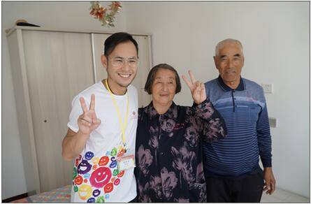 由北京、深圳、香港、澳門四地組成的英皇義工隊在楊受成(中國·昌黎)關愛老年中心合影留念