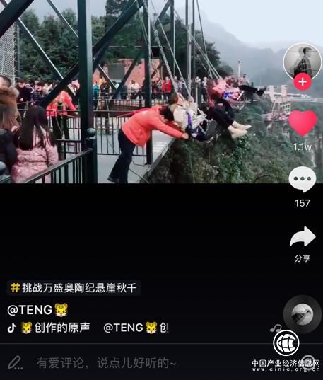 數千萬播放量、數百萬點贊量,最近,很多全國抖音用戶都被一個高空蕩繩視頻刷了屏。一個個年輕人不顧一切地從一個離地300米的高臺跳下,先是垂直下降,接著被近百米長的無彈性繩索,牽引著在空中擺蕩,讓大家看得心驚肉跳的同時,大呼刺激。這條抖音的拍攝地,就是重慶奧陶紀景區。網紅重慶,目前已經形成以洪崖洞、奧陶紀、穿樓輕軌為代表的三大“短視頻必火點位”,其中,以高空刺激項目為主體的重慶奧陶紀景區,作為三者之中唯一一個非主城景區,出鏡率和點贊量尤其高,小編為你揭秘奧陶紀抖音爆紅大法,助你成為抖音紅人。拍攝目標:18米懸崖秋千火爆密碼:中國最危險懸崖秋千