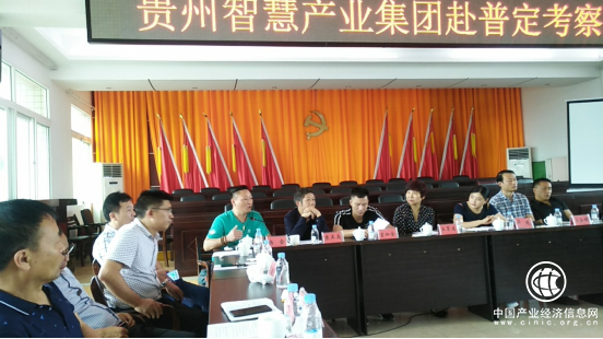 考察團各負責人一行就貴州智慧產業集團情況、食品安全云、商品采購、智慧產業園區建設、再生資源園區建設、茶葉基地建設、大健康產業園開發建設、共建普定大數據服務中心、智慧農業、智慧電力、智慧旅游、智慧醫療、智慧社區、智慧校園、戶外拓展、金融服務等進行了詳細的介紹并與普定縣委政府負責人及各部門負責人進行了深入的交流。