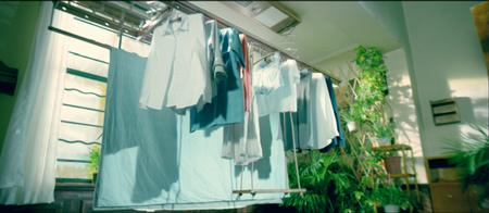 故事的結尾,貼心的妻子為家里換置了晾衣機,從之前的手搖式變成了智能式。當晾衣機緩緩升起的那一刻,架子上又出現了那塊童年的秋千板,似乎在為新的家庭成員做準備。