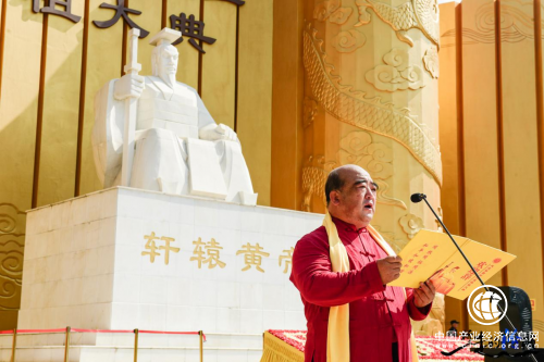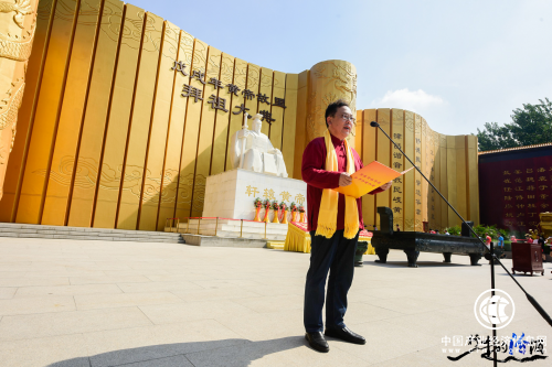 汾酒集團董事會秘書長張琰光致拜祖大典辭,表達了酒業炎黃后裔恭以虔誠感恩之情拜祭始祖黃帝的深情厚誼,并祈愿祖國昌盛,中原富足安康,汾酒清香流遠,傳承光大。