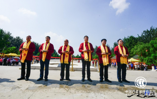 隨后,汾酒集團公司黨委委員、董事、汾酒股份公司總經理常建偉,汾酒集團董事會秘書長張琰光,汾酒股份公司副總經理、汾酒銷售公司、竹葉青銷售公司總經理李俊,汾酒集團文化總監柳靜安,汾酒股份公司辦公室主任閆向兵,汾酒銷售公司河南獨立省區經理喬宇星走上拜祖臺,向黃帝像敬獻花籃,并面向黃帝像,滿懷崇敬之情“行施拜禮”,并斟滿汾酒,舉杯過頂,灑向大地,深深三鞠躬。