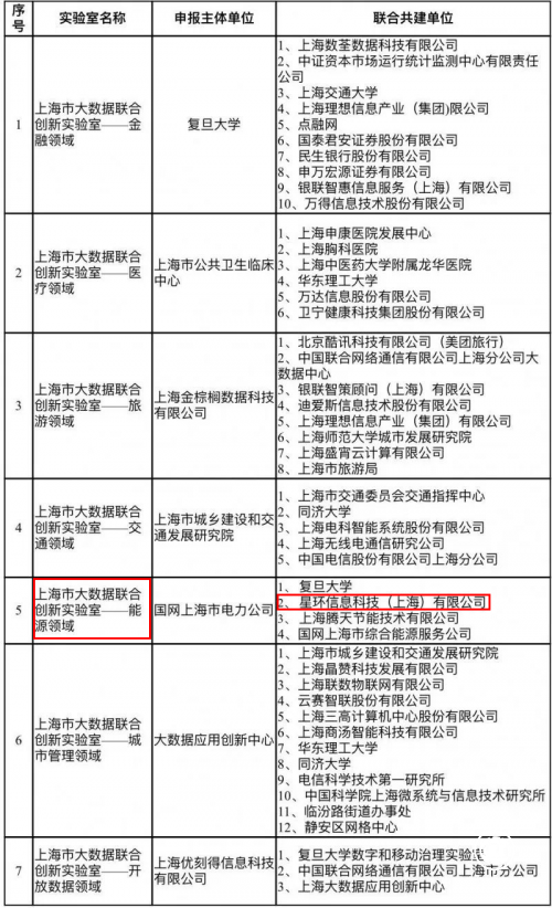2018年度上海市大數據聯合創新實驗室試點名單