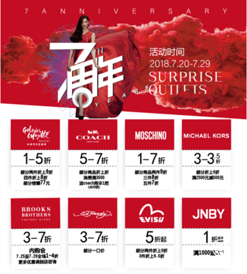 暑期來臨,氣溫升高,熱情不減,恰逢北京斯普瑞斯奧萊7周年生日季,在炎熱的夏天為大家帶來驚爆的活動,7.20-7.29連續十天的店慶活動,六大看點,燃爆這個盛夏!